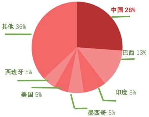 柑桔是世界第一大水果,面積和產量均居世界各類水果之首。目前,中國柑桔產量占比全球約28%左右,持續保持世界柑桔種植面積、產量雙首位。