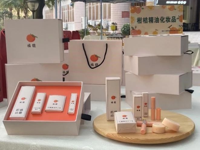 由于紅桔精油的護膚特性,其常被用于制作化妝品的原料。重慶三峽職業學院組建紅桔深加工團隊,已成功開發出精油、潤唇膏、香皂等古紅桔精油化妝品。