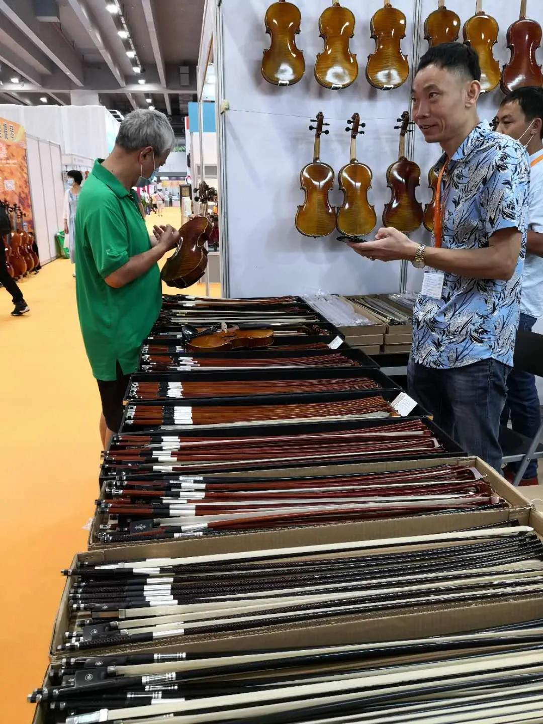 蘇州相城區是國內提琴弓的集中制作基地。本次廣州樂器展,有一些來自蘇州相城區的展商帶來了他們的琴弓以及提琴配件。一位曾經以外銷為主的提琴展商說:因為國外疫情至今還未撲滅,我們通往國外的銷售渠道基本阻斷,故此,國內提琴在當下只能想盡辦法打開國內的銷售渠道,在內循環的大趨勢下,調整思路。一位制作師表示:只有對提琴產品精益求精,讓提琴作品在質量和聲學品質上不斷突破,才能贏得國內外專業人士和音樂愛好者的青睞。展會上,提琴展商們展示著自己最好的作品,期望得到有識之士的認可,亦期待在廣州樂器展上能夠有所收獲。