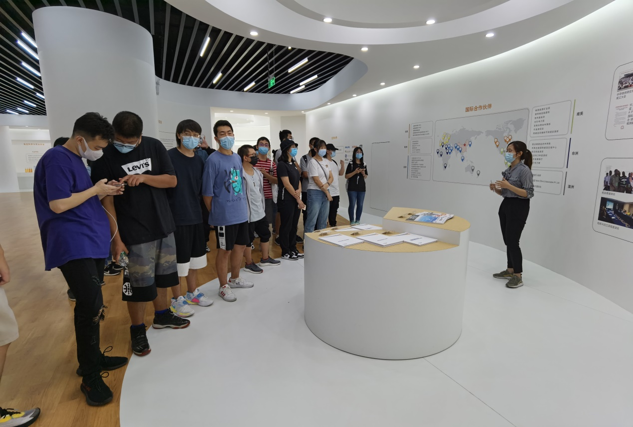在北京一輕研究院展示館,師生們聽取工作人員介紹了北京一輕研究院的發展歷程和組織框架結構、院屬產業集群、產品及服務情況。